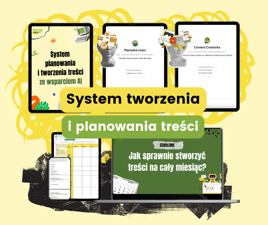 Szablon możesz dopasować do swoich potrzeb i aktualnych możliwości, a dwie asystentki AI pomogą Ci znacząco skrócić czas, który poświęcasz na tworzenie treści do mediów społecznościowych swojej marki.