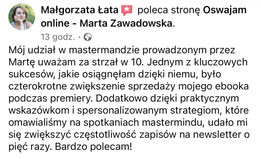 Jeśli sprzedajesz w nim produkty cyfrowe (e-booki, kursy, warsztaty itd.) lub usługi to tak. Jeśli Twój biznes opiera się o sprzedaż gotowych produktów fizycznych (np. ubrań, akcesoriów itd.) to nie – na tym szkoleniu nie będziemy poruszać tematów typowo e-commercowych.