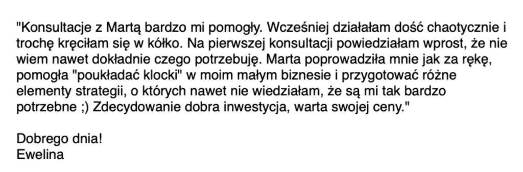 Strasznie mnie to frustrowało, ale w końcu zrozumiałam, gdzie popełniam błąd. Podjęłam odważną decyzję – zmieniłam model biznesowy rezygnując właściwie całkiem ze świadczenia usług i postawiłam na wprowadzenie różnych modeli sprzedaży moich ofert.